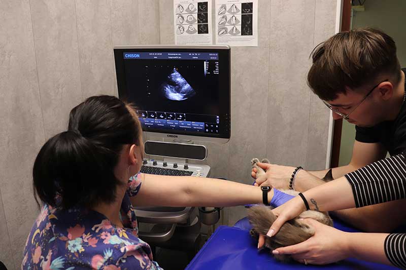 Животное укладывается на спину, машинкой состригается шерсть в необходимой области (не переживайте, она отрастёт через пару месяцев), т.к. она мешает прохождению ультразвуковых волн, что может повлиять на качество картинки, а иногда и вовсе делает исследование невозможным.На датчик наносится специальный гель (он полностью безопасен для животных) и начинается исследование внутренних органов. Процедура безболезненная и занимает от 20 до 40 минут, в конце врач описывает все изменения и выдает заключение.
